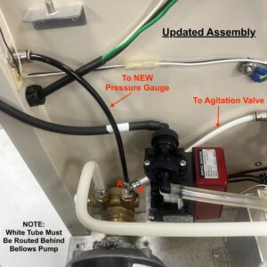 - Remove the white tube from Port A on the pump tee and connect it to Port B.