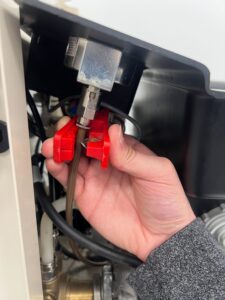 - Cut the brown tube connected to the back of the existing pressure gauge as close to the gauge as possible.